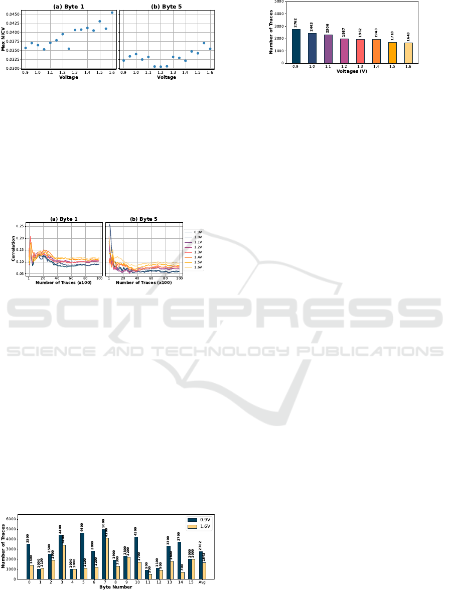 1.6 V, only 1100 traces are needed, indicating signifi-