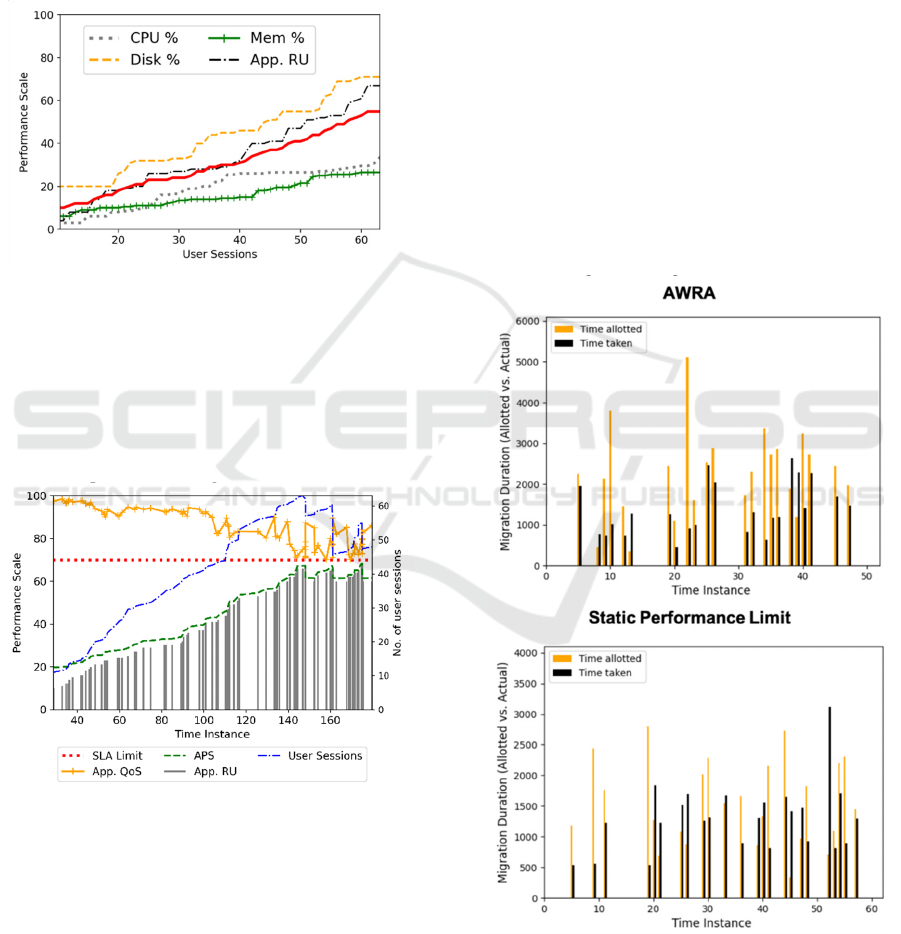 the user sessions handled and the migration time