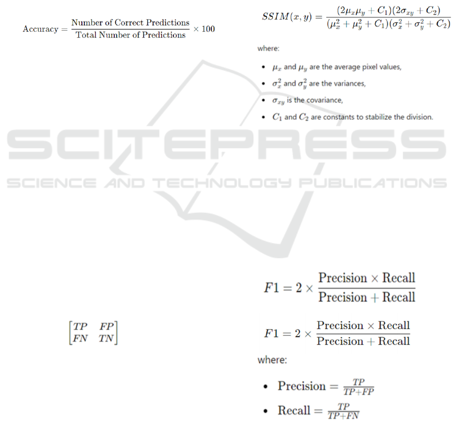 such as F1 score, approach record (SSIM),