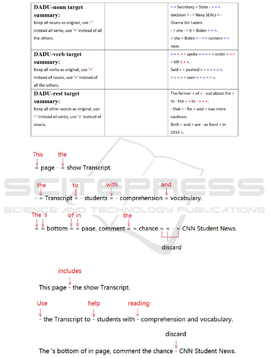 Table 6: Examples of DADU-generated and labeled summaries.
