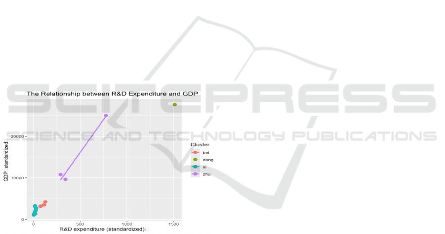 GDP (in billions of yuan), respectively. The scatter