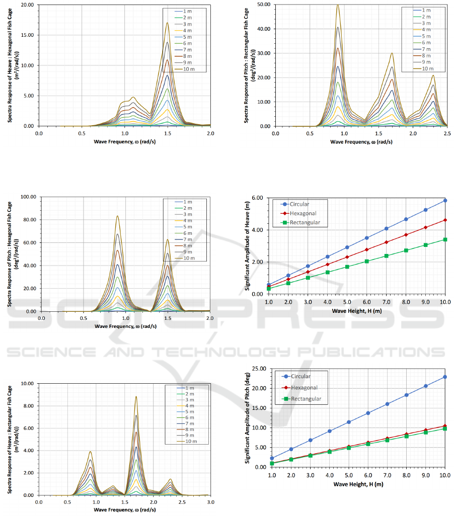 analysis reveal that the response of circular fish cage has the largest amplitude in heave and pitch motion than