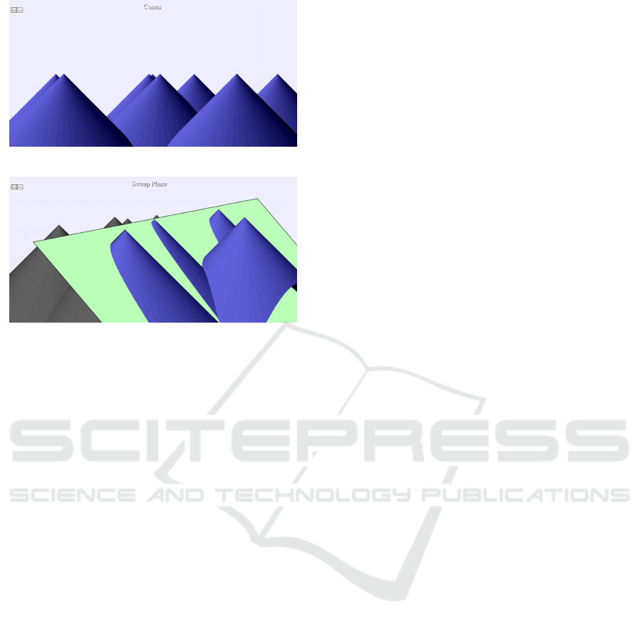 cones under light coming from the left. It is substan-
