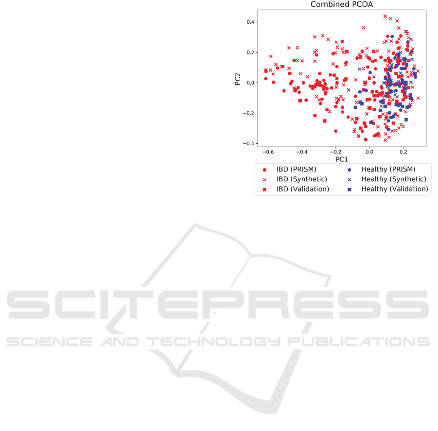 generated, and random samples for IBD (left) and healthy