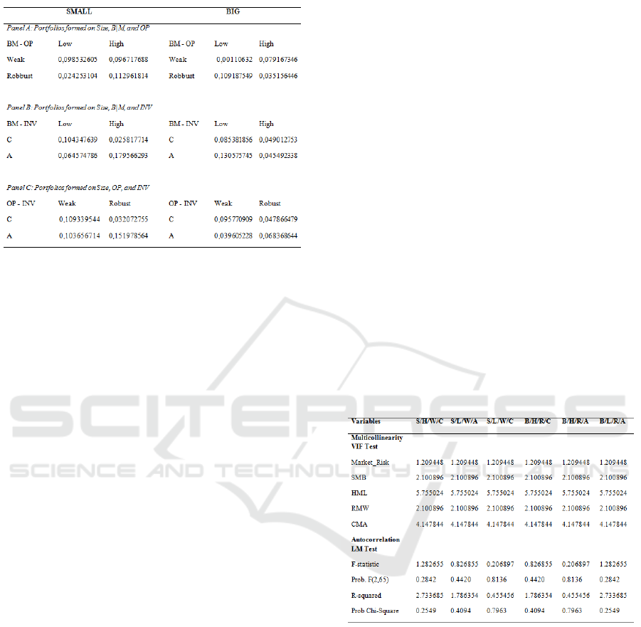 The pattern used for the formation of portfolios