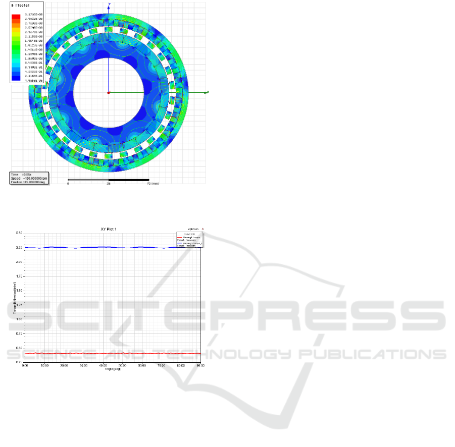 magnetic field and the steady-state torque characteristic of Halbach type computed by commercial software