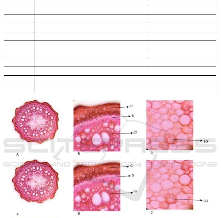 and shape of stomata. Minor variations included a