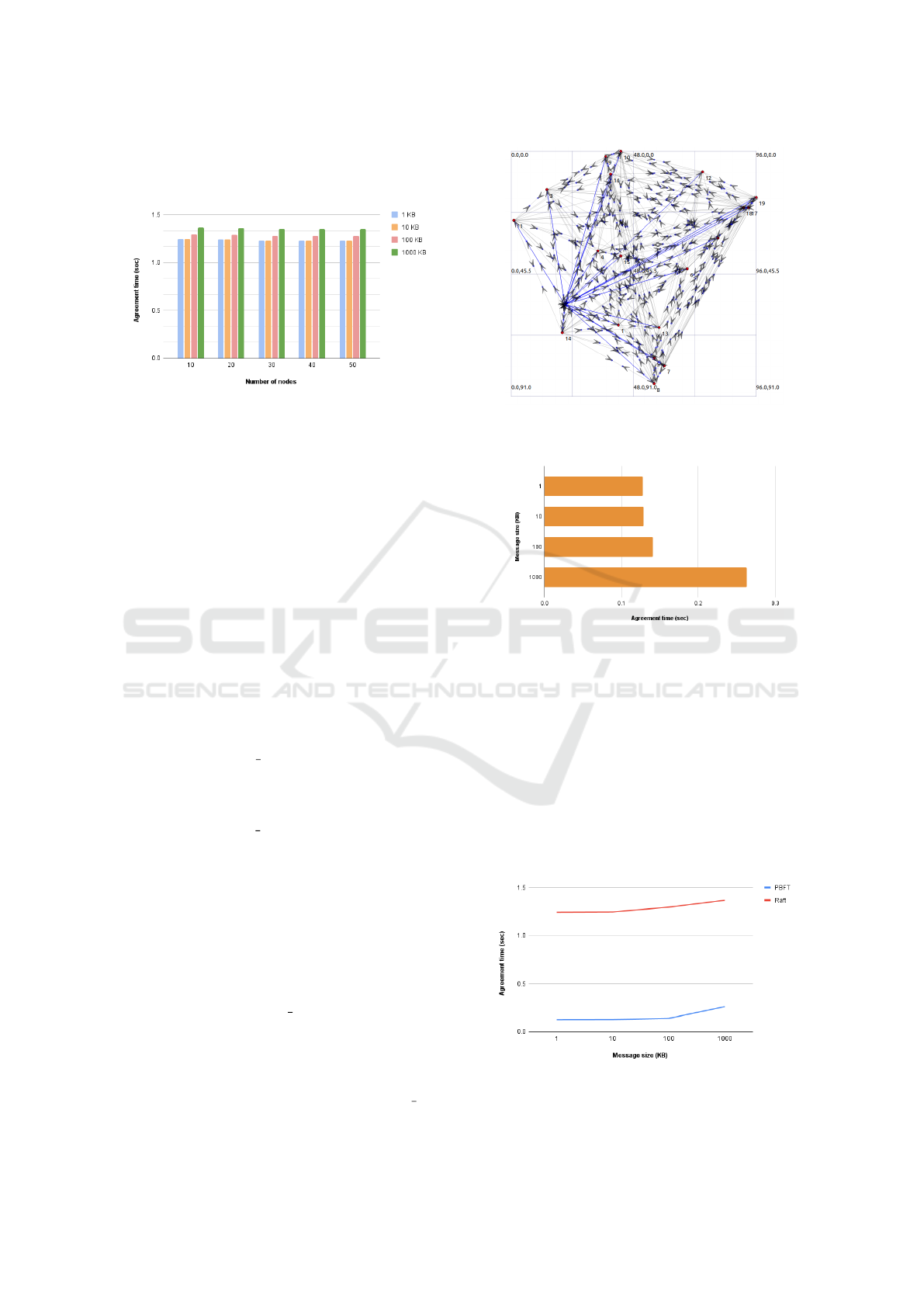 cols, namely Raft and PBFT, utilizing the NS3 net-