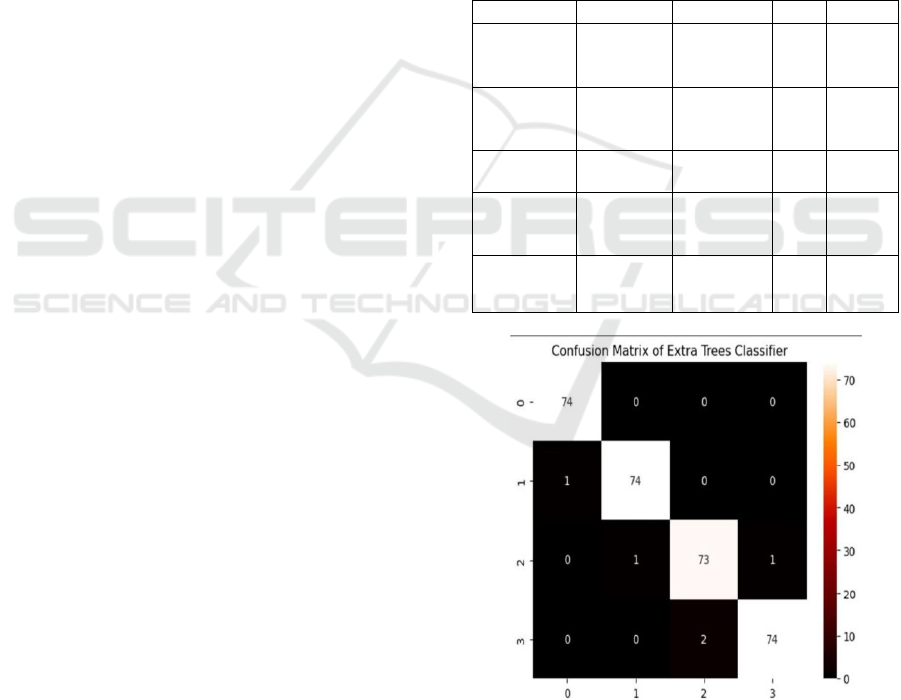 learning models, including Extra Trees Classifier,
